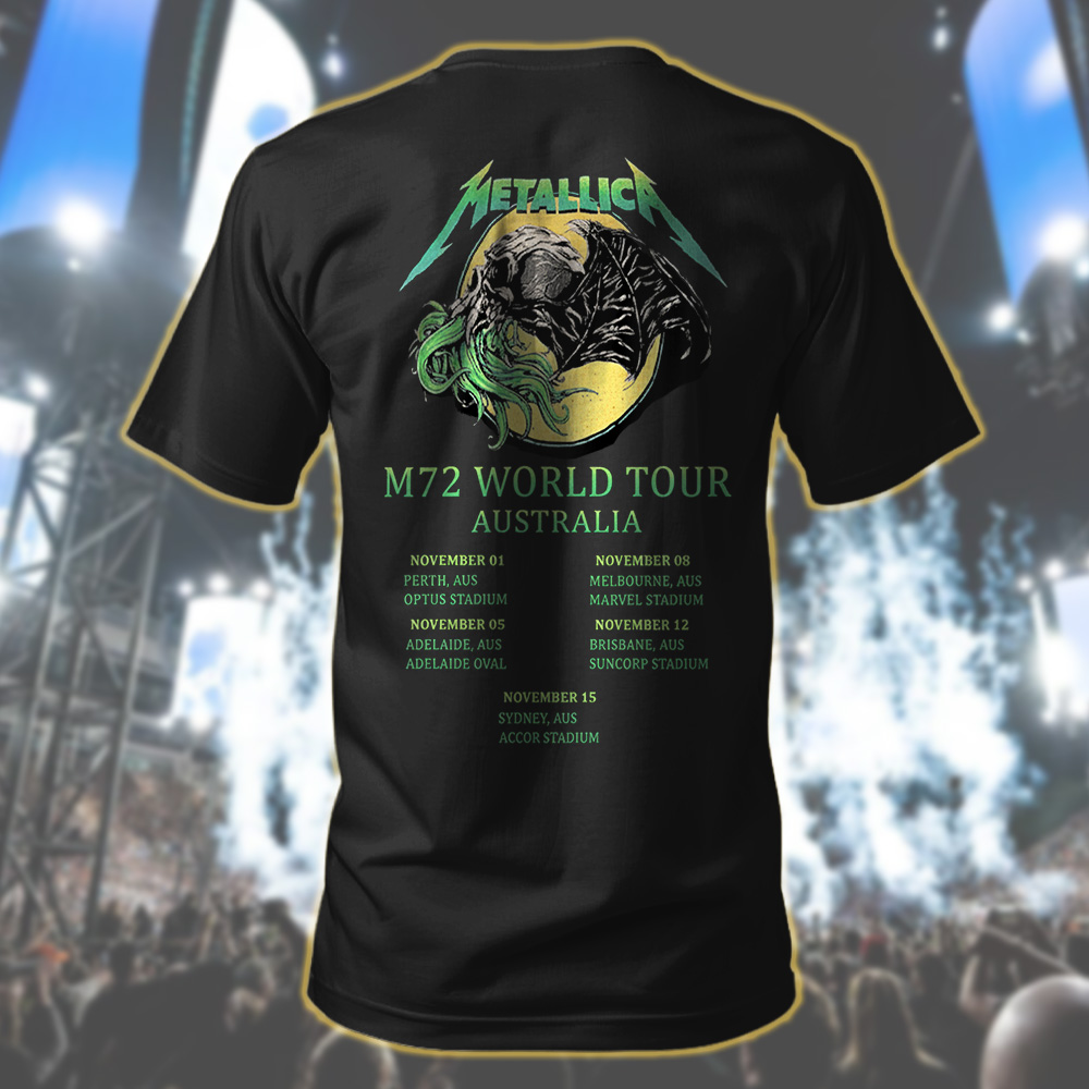 Elevate your wardrobe with the official Metallica M72 World Tour T-Shirt, a must-have for any true fan. Designed with a striking graphic showcasing iconic imagery, this shirt celebrates Metallicaβs Australian tour dates and captures the spirit of rock βnβ roll.