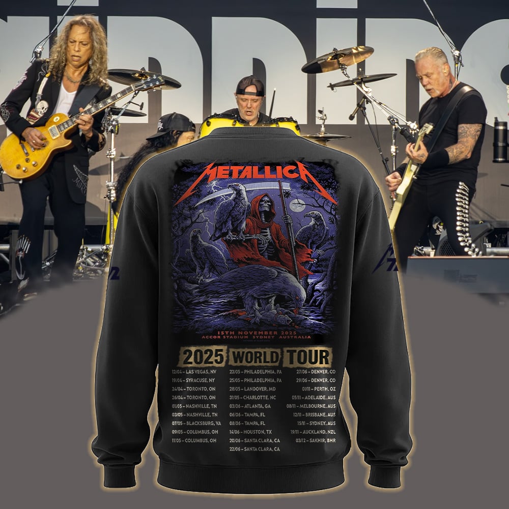Embrace your inner metalhead with the exclusive Metallica 2025 World Tour Sweatshirt, a perfect blend of style and comfort. Crafted from high-quality fabric, this sweatshirt features intricate artwork showcasing the iconic Metallica imagery, highlighting both the band’s legacy and their upcoming tour dates.